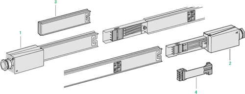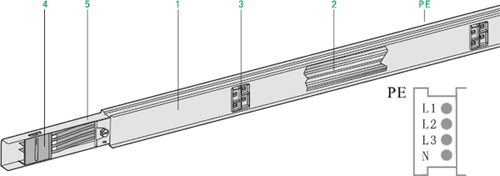 直构件三种规格:16A、25A、40A。YZM-16EA403、YZM-25EA403、YZM-40EA403组成照明母线的主体。用于供电、支承和供电给照明灯具和插座盒。内置4芯绝缘线排。标准长度1M、2M、3M,也可以按用户要求制作非标长度。